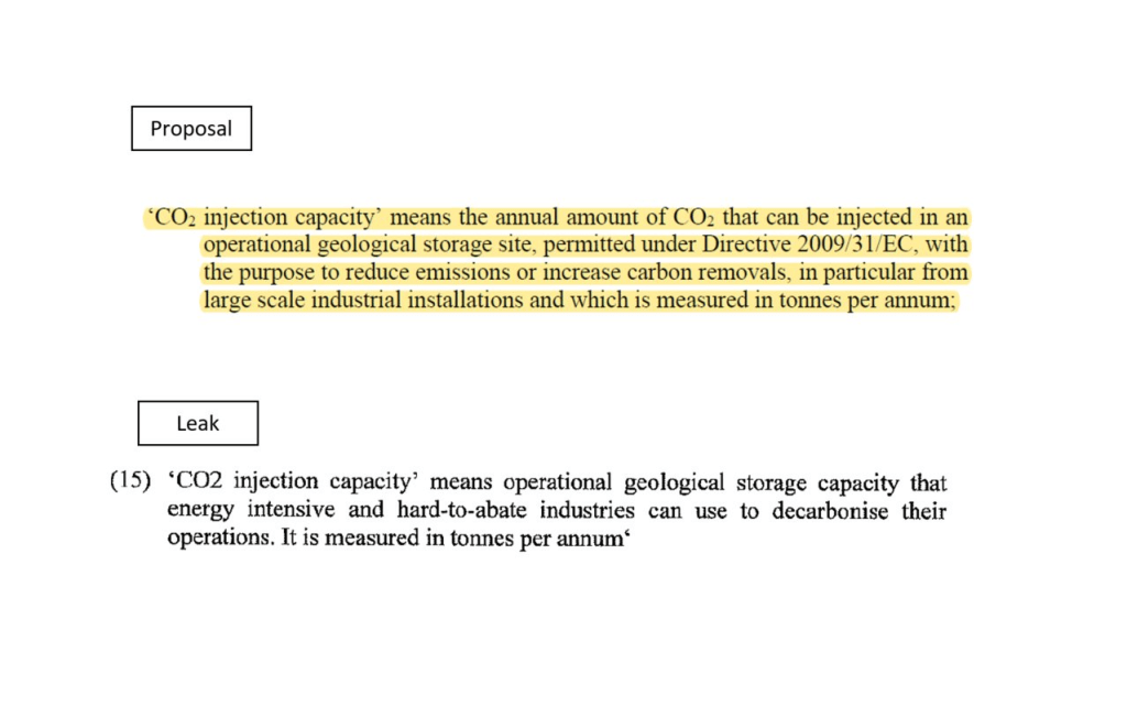 Initially, the wording from a leak stated that CCS would be needed to “assist the power sector in achieving climate neutrality or net-zero with carbon removals,” but this was removed from the final proposal due to potential controversy. The definition of the capacity target also shifted from “energy-intensive and hard-to-abate industries” to “reducing emissions or increasing carbon removals, particularly from large industrial installations.”