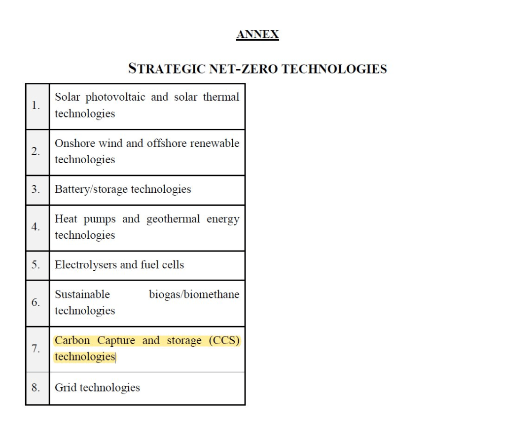 CCS technologies are now part of the set of “strategic net zero technologies” that the EU Commission wants to support. Earlier versions of the document used the term “CCUS”, but advocates of carbon capture and use (CCU) lost the framing battle.(for insights from the first leak, see this Twitter thread).