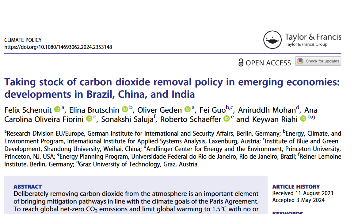 Taking stock of carbon dioxide removal policy in Brazil, China, and India – new research article in Climate Policy