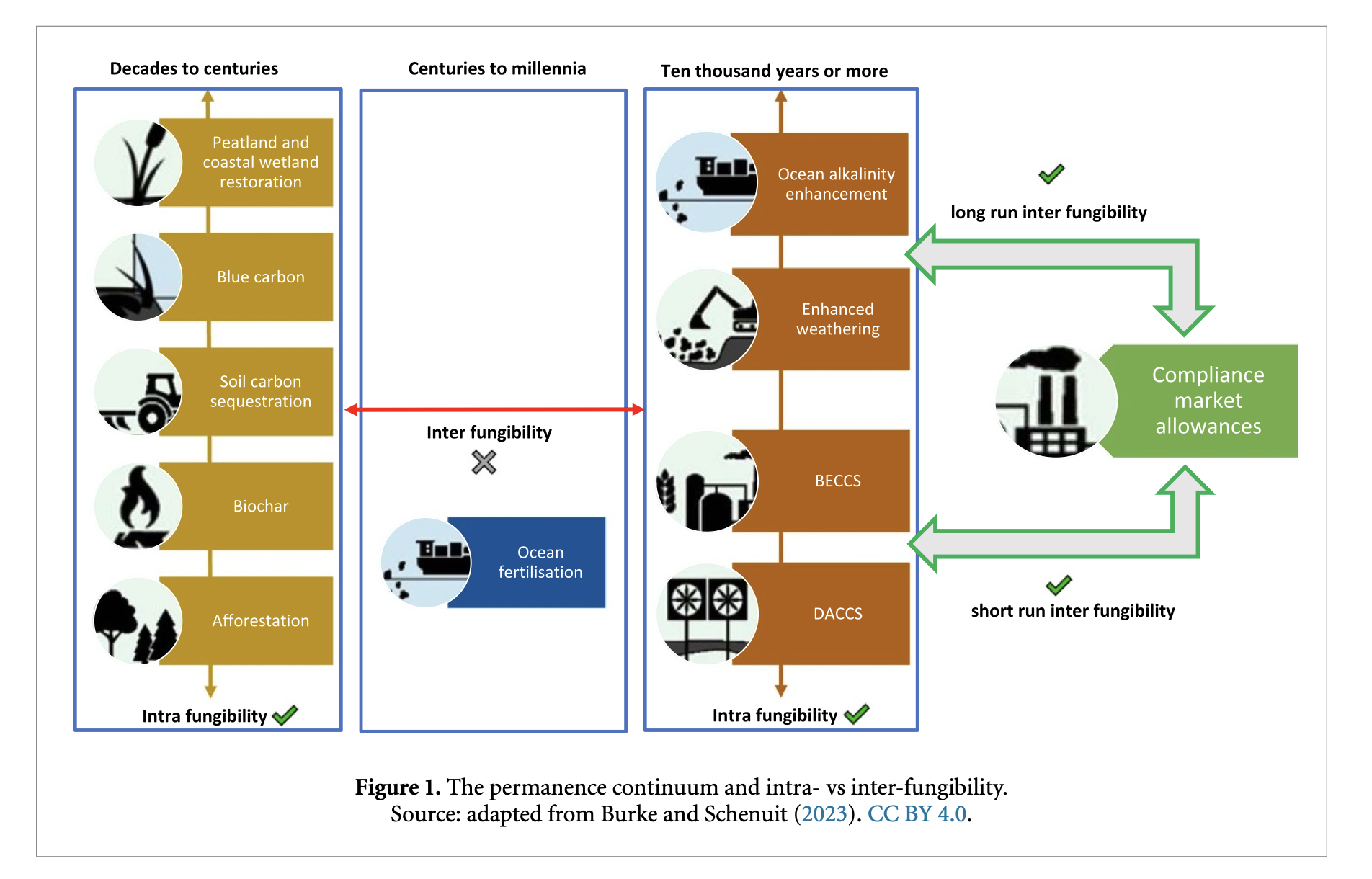 Our key argument: With the growing momentum for carbon dioxide removal (CDR) as a key element of mitigation strategies to achieve net-zero emission targets, its potential integration into cap-and-trade carbon markets is emerging as a key policy issue. A fundamental question in both conceptual and practical policy discussions relates to which CDR methods should be integrated into emissions trading systems (ETS). Based on a mapping and bundling of different measures to address varying permanence and a framework for conditional fungibility, we argue that only methods that are considered “permanent” should qualify for integration. The integration of CDR into compliance markets requires a strategic policy sequencing strategy consisting of three steps: first, the establishment of credible certification through the implementation of robust MRV systems. Second, the introduction of liability measures to address potential releases of removed carbon. And third, defining rules for the integration of CDR certificates into the market so that they can be traded with ETS allowances.
